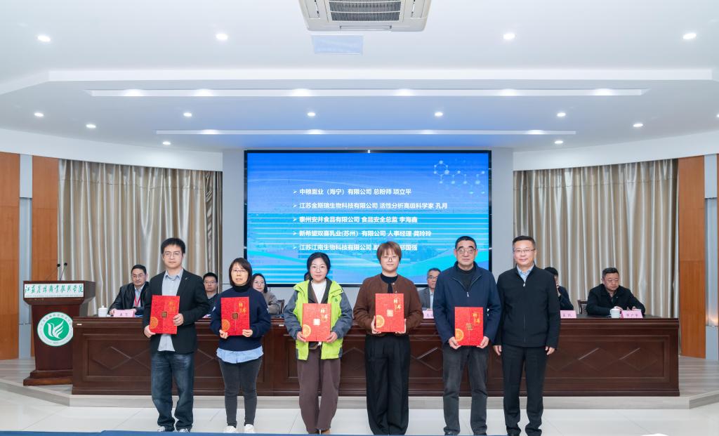 大会举行了产品导师聘任与新增单位授牌仪式。学院党委委员、副院长毕德全为产业导师颁发了聘书。江苏大学食品物理加工研究院院长马海乐、中粮面业(海宁)有限公司总粉师项立平为新增单位代表进行了授牌。