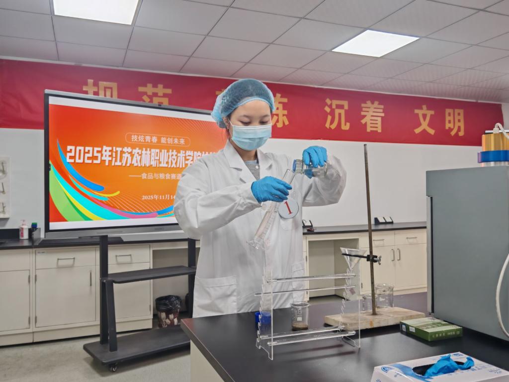 2025年江苏农林职业技术学院学生技能大赛食品粮食分组赛道决赛于11月14日在学校教务处指导下,在茶与食品科技学院精心筹划下顺利开展并圆满落幕。本届大赛旨在深化实践教学改革,服务产业发展升级,全面检验和提升学生的专业技能水平、创新能力和职业素养。
