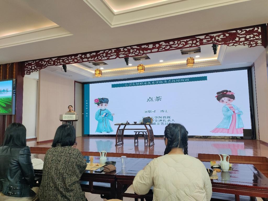 为传承中华优秀传统茶文化,夯实茶艺专业学生的传统技艺基础,11月29日上午,茶与食品科技学院在江苏茶博园习茶院二楼大众茶馆举办仿宋点茶专题讲座,活动特邀江苏大学宋联可老师主讲。宋老师长期致力于传统茶文化研究与传播,在仿宋点茶技艺传承与教学领域有着深厚的造诣和丰富的实践经验。茶与食品科技学院24级茶艺与茶文化班全体学生及多名专业教师参加活动。