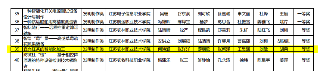 2025年12月27日,由中国发明协会主办的第二十届全国高职院校“发明杯”大学生创新创业大赛圆满落幕。我院茶学专业学生团队凭借参赛项目《宜兴红茶的智能化加工》在比赛中表现优异,最终荣获“发明制作类”一等奖一项、“专利创新类”三等奖一项,展现出扎实的专业素养和突出的创新能力。