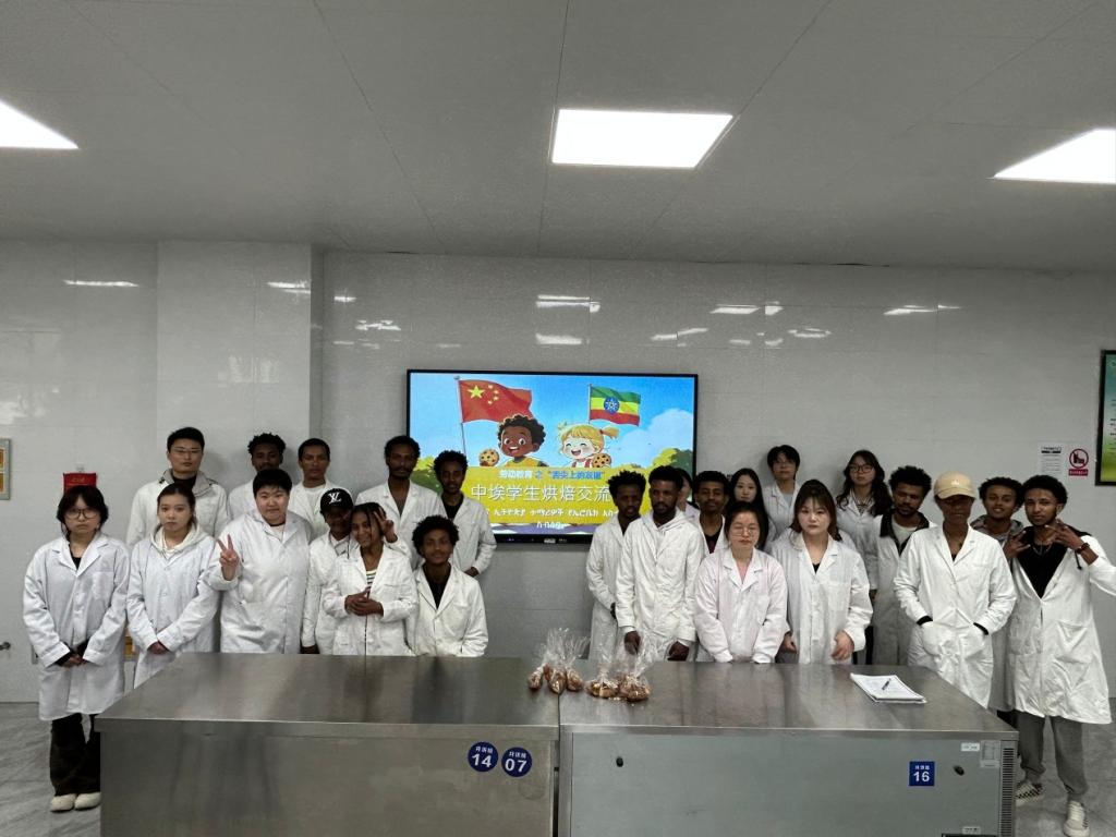 周四下午,烘焙交流环节正式开启。中国学生与埃塞俄比亚留学生围坐在一起,相互分享烘焙技巧、交流饮食文化。大家分工协作、默契配合,打面、挤花、烘烤,在欢声笑语中感受彼此的文化魅力,现场氛围温馨而热烈。活动尾声,25农产品加工与质量2班的同学们将剩余的曲奇成品全部赠送给埃塞俄比亚留学生班级,用甜蜜的礼物传递友谊与关爱。